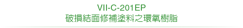 3.修補或復原的粘劑:將VII-C-201EP 環氧樹脂與水泥和其應添加之砂石混合製成一更堅實,抗化學及耐撞的混凝土作為修補料。