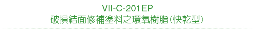 3.修補或復原的粘劑:將VII-C-201EP 環氧樹脂與水泥和其應添加之砂石混合製成一更堅實,抗化學及耐撞的混凝土作為修補料。